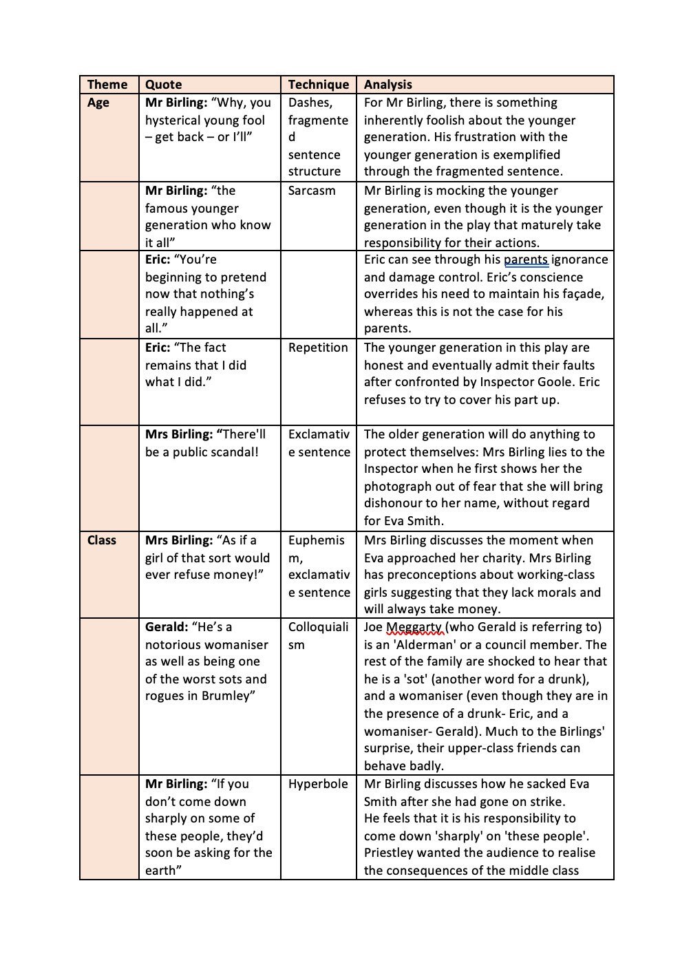 AN INSPECTOR CALLS Quote Bank GCSE English Literature