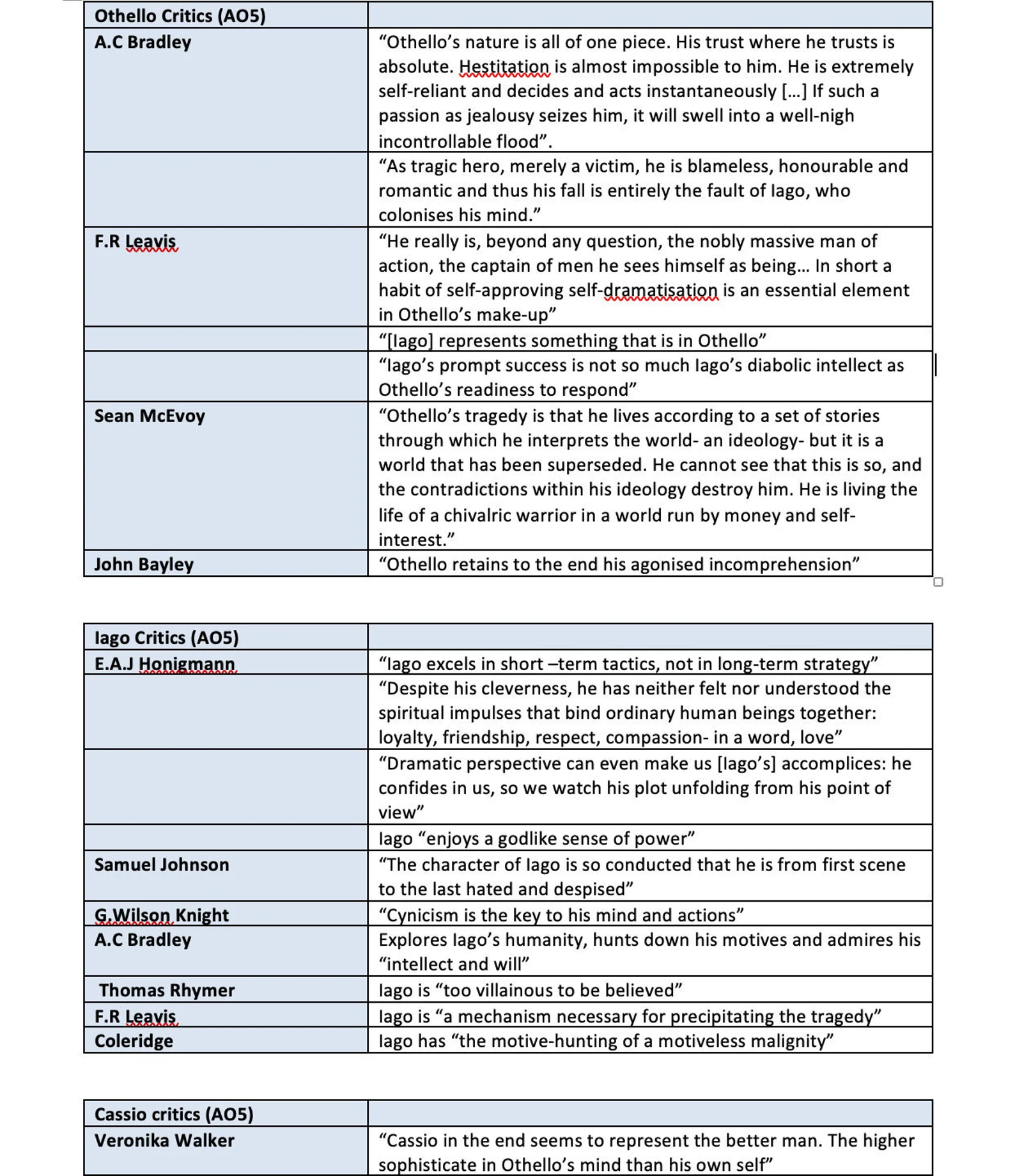OTHELLO Critics A Level English Literature